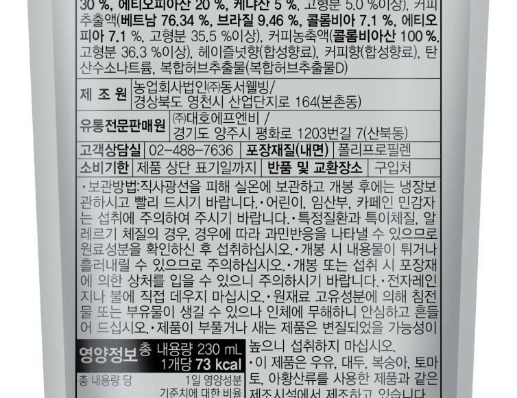 | 원재료명 및 함량 | 상세설명페이지 참고 |